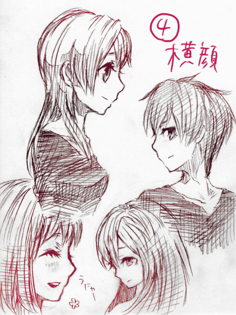 普通の斜め45゜(?)の状態なら右向きよりは左向きの方が描きやすいですが、横顔に関しては右向きの方が描きやすいです